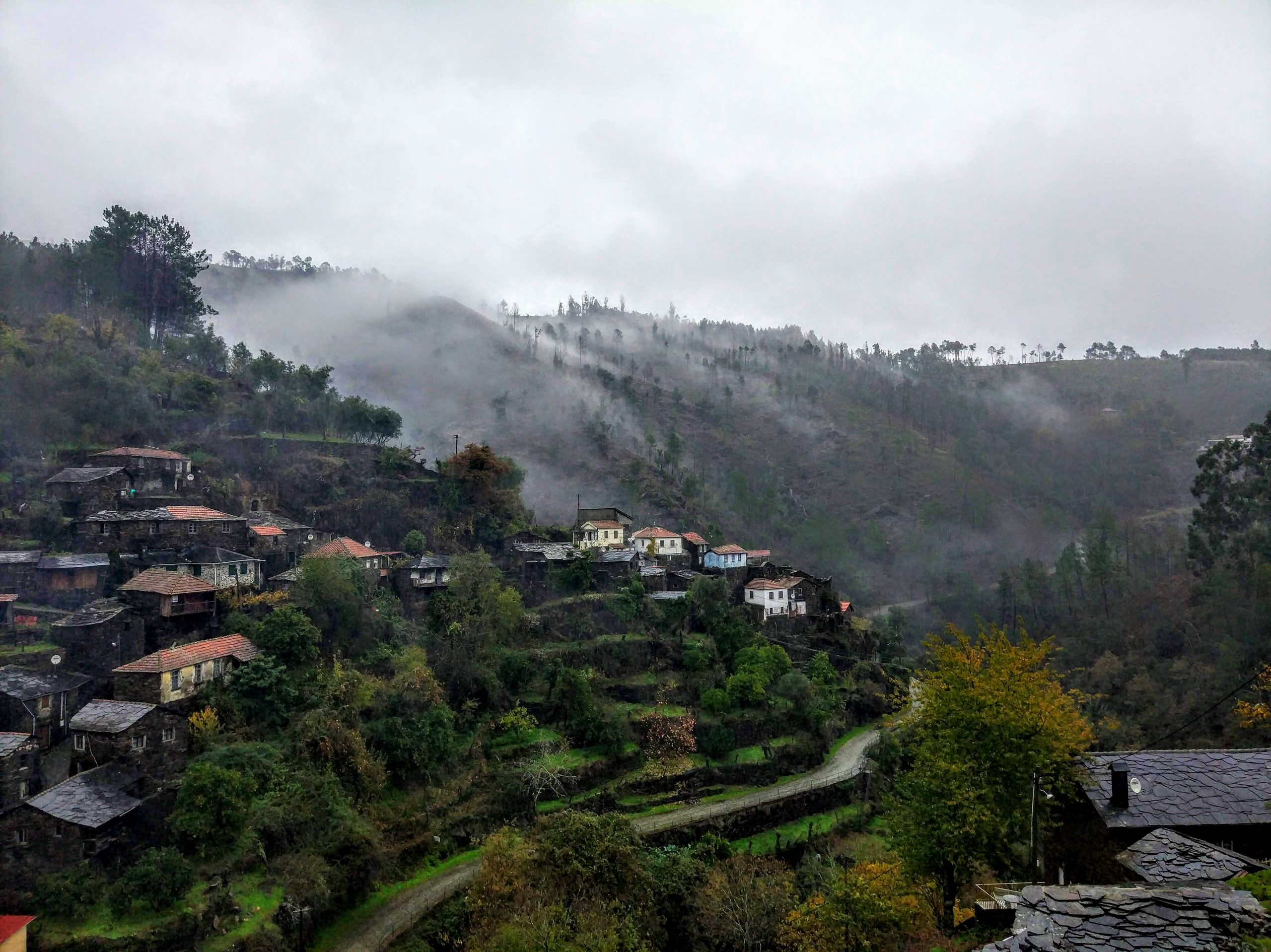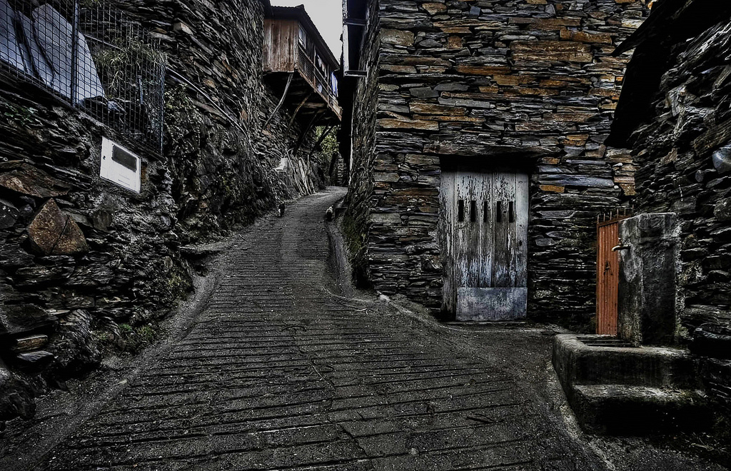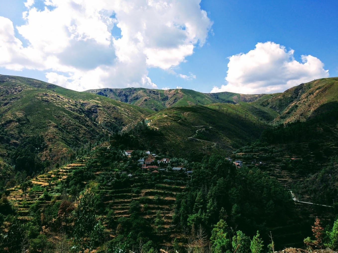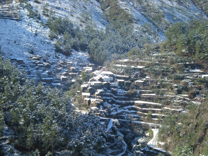 No fundo de um vale, rodeado por enormes montes cobertos na sua maioria por vegetação rasteira, ergue-se um punhado de casas.
