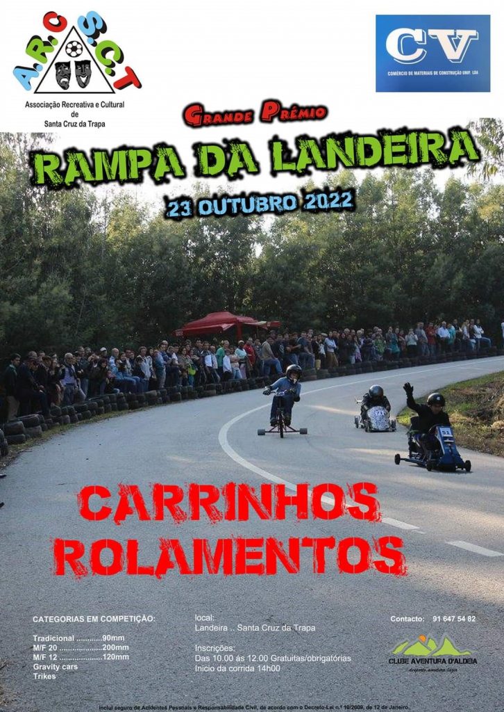 Dia 23 de Outubro, ocorre a corrida de carrinhos de rolamento, denominada de Rampa da Landeira, em Santa Cruz da Trapa, diversão não vai faltar.